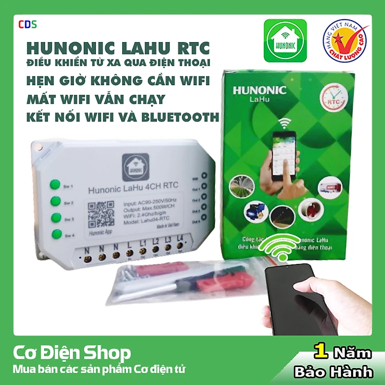 Công tắc thông minh [ĐIỀU KHIỂN TỪ XA] Hunonic Lahu 4 Kênh RTC - Điều khiển qua Wifi, Bluetooth - Hẹn giờ không cần wifi