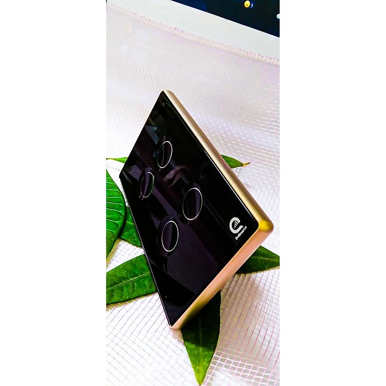 Công tắc cảm ứng thông minh Evismart, mặt kính cường lực viền nhôm, 4 nút bấm, màu trắng hoặc đen, sử dụng sóng wifi, điều khiển từ xa qua app Tuya