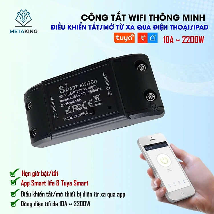 Công Tắc Wifi Thông Minh 10A ~2200W - Chức Năng Hẹn Giờ, Điều Khiển Từ Xa, Google & Alexa