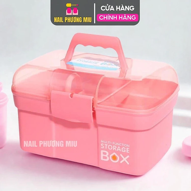 Cốp Nhựa Hồng Đựng Dụng Cụ Làm Nail 2 Ngăn Tiện Lợi 30x19x18cm, Để Vừa Máy Hơ Sun 5, Nắp Trong Có Thể Tháo Rời, Dễ Vệ Sinh Nail Phương Miu