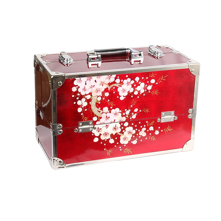 Cốp sơn mài cao cấp Hana đựng mỹ phẩm, đồ phun xăm, nail, nối mi sơn mài dát vàng cẩn vỏ trứng, họa tiết vẽ tay cao cấp, viền khung nhôm chắc chắn, bọc góc inox size 40x20x26 cm