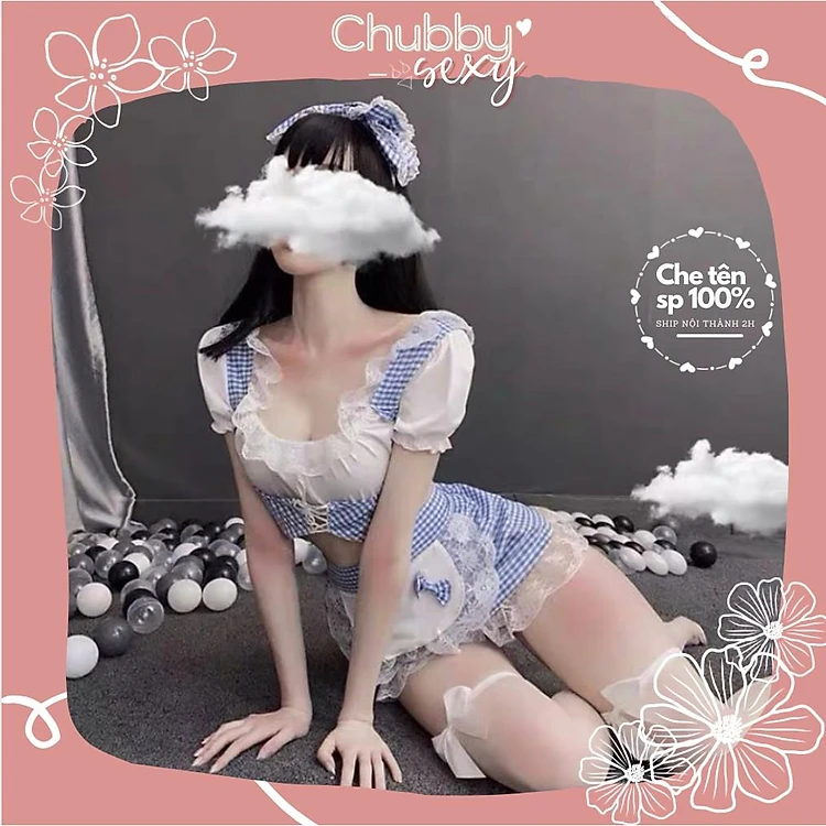 Cosplay sexy hầu gái - Bộ đồ lót nữ sexy gợi cảm - Set đồ cô hầu gái kẻ caro xanh - CPL03 - Chubby.sexy