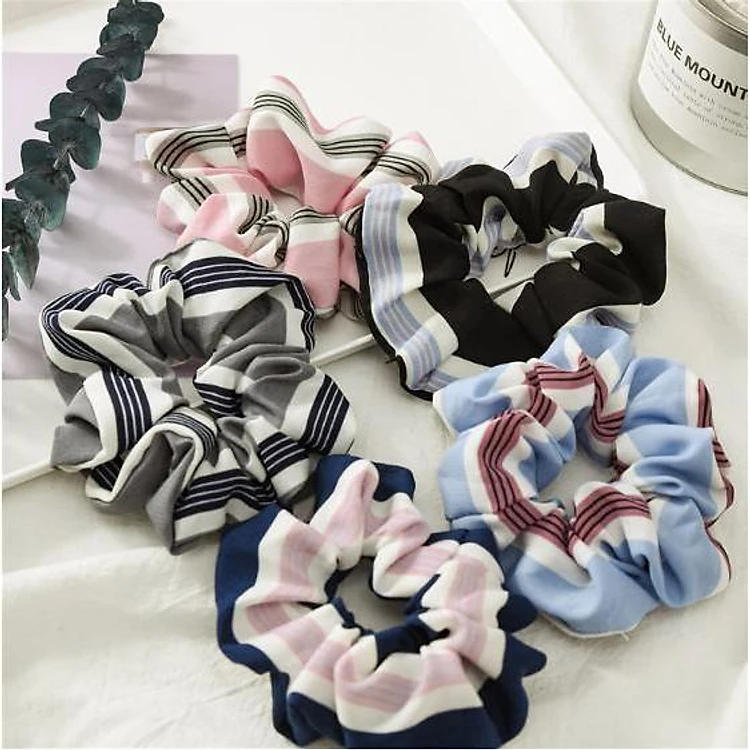 Cột (buộc) tóc scrunchies kẻ sọc xinh xắn M10