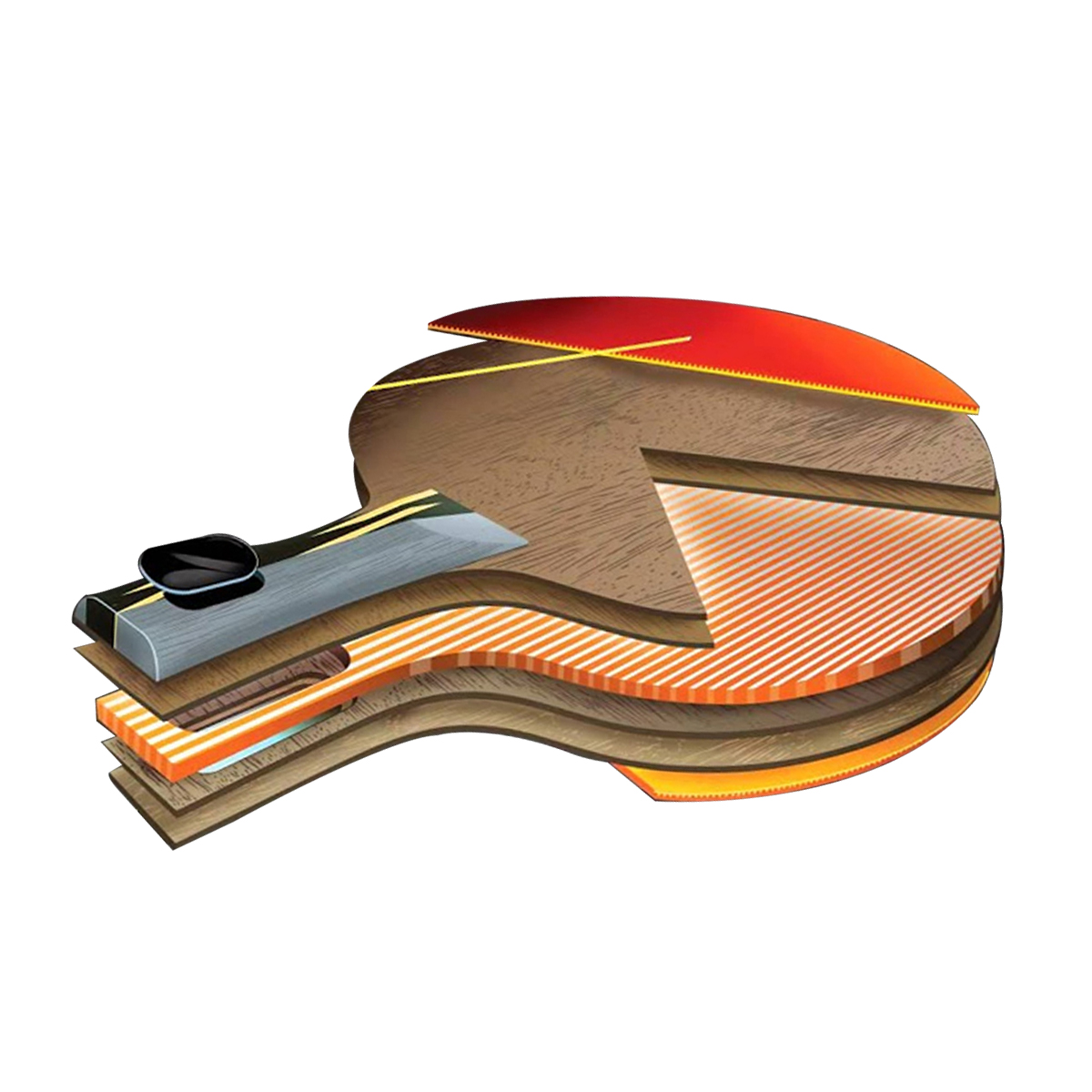 .Lõi cứng, được gia cố bằng lớp carbon phủ gỗ Kiri giúp kiểm soát năng lượng. Điểm chạm được mở rộng nhờ lớp Carbon đảm bảo mang lại cảm giác bóng tốt nhất có thể cho người chơi.