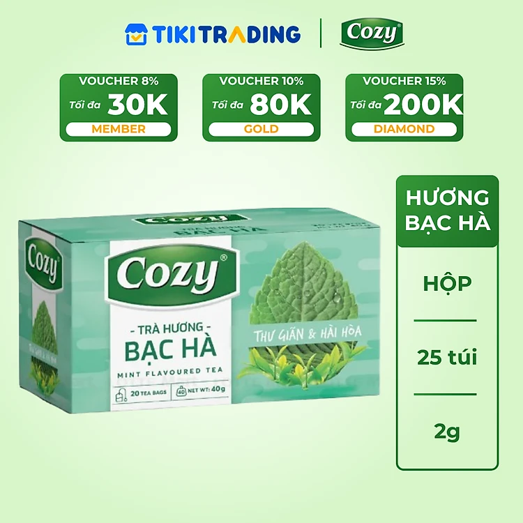 Cozy Trà Cozy túi lọc Hương Bạc Hà 25 túi x 2g Hộp