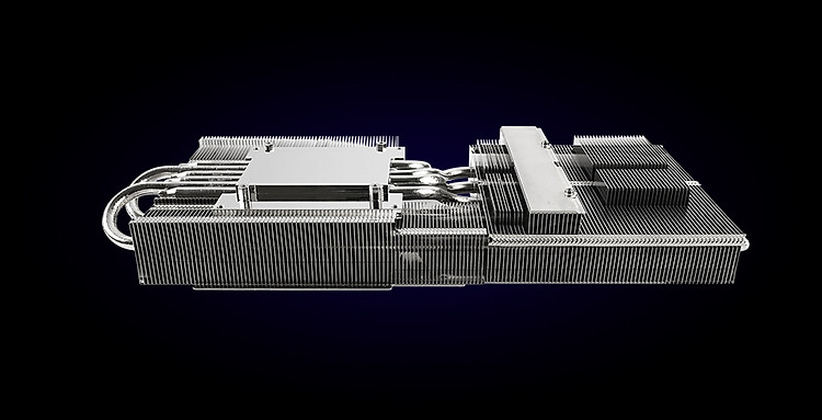 Strix tận dụng thiết kế 2,7 khe để có được diện tích bề mặt tản nhiệt nhiều hơn. Khoảng không nhiệt tăng thêm khả năng ép xung và cho phép người hâm mộ chạy ở tốc độ thấp hơn trong các tình huống ánh sáng.