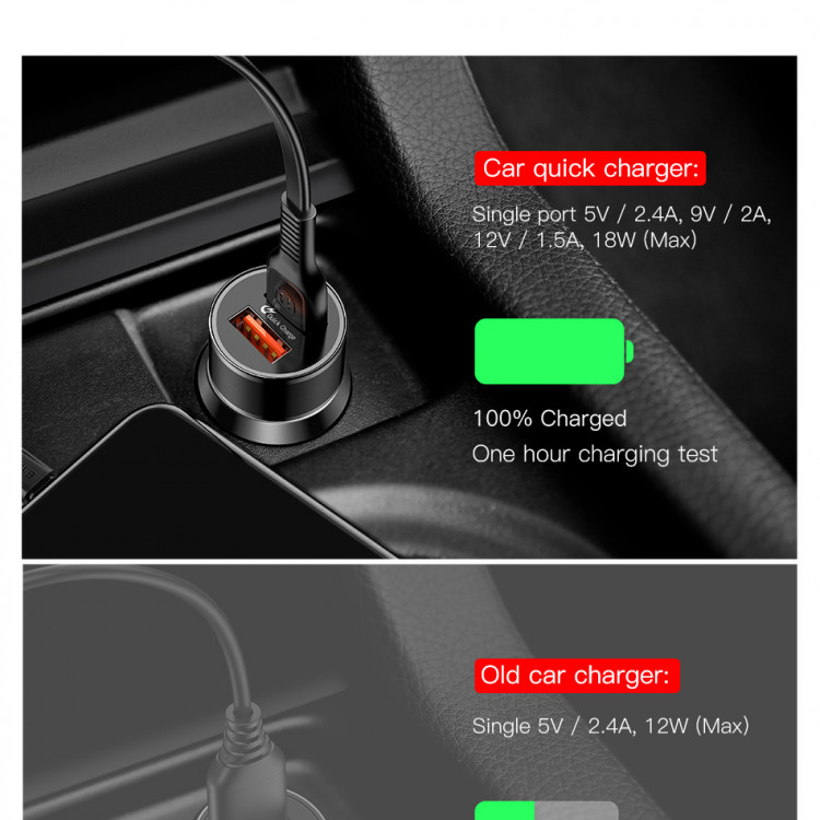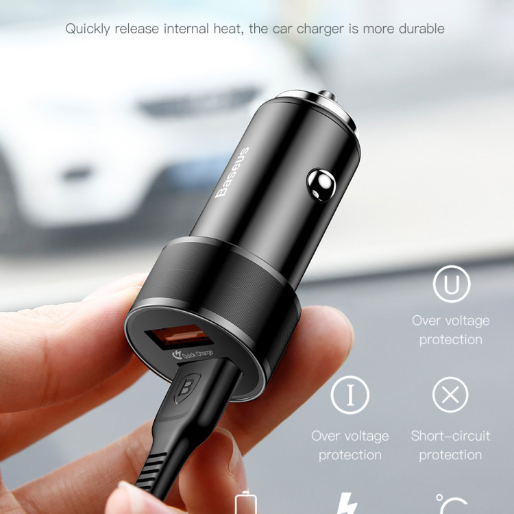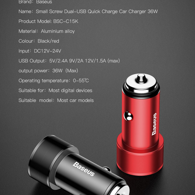 • Củ Sạc Điện Thoại Mini Trên Ô tô Baseus - 36W Hai Cổng USB QC 3.0 được trang bị 2 cổng sạc tiện lợi, cho 2 thiết bị cùng lúc mà vẫn đảm bảo an toàn. Phù hợp với nhiều thiết bị khác nhau khi chỉ cần sắm thêm dây cáp micro USB, dây cáp Lightning hay dây cáp Type-C để sạc thông qua cổng USB.
