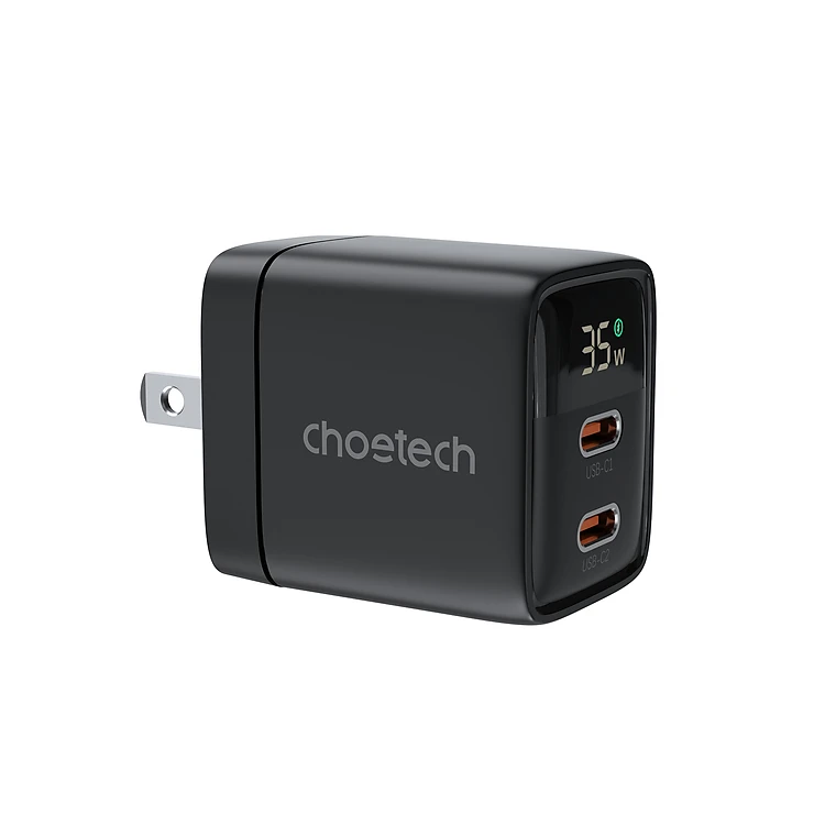 Củ sạc Choetech PD6051 nhanh 2 cổng PD 35W có màn hình LED hiển thì thông số sạc (hàng chính hãng)