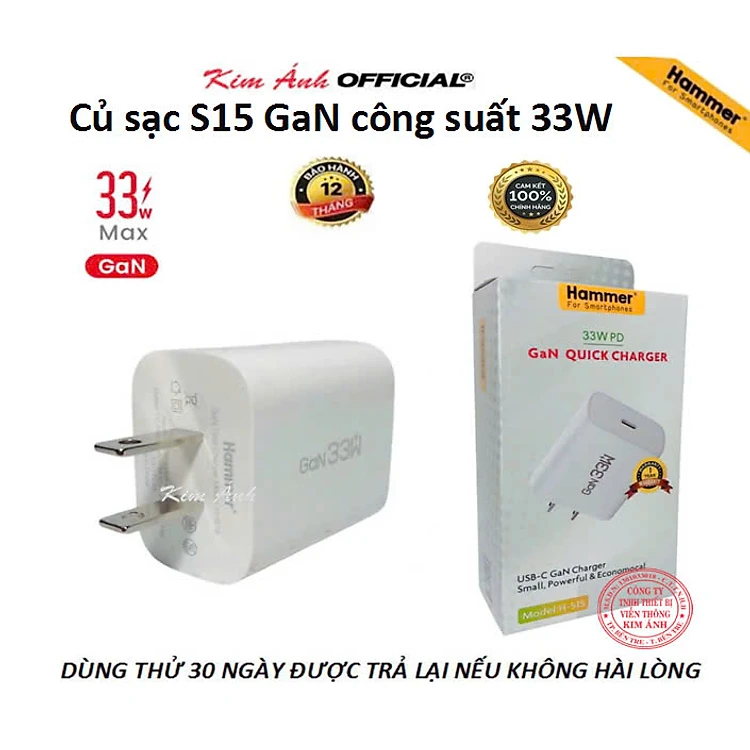 Củ sạc nhanh GaN Ham mer H-S15 công suất 33W, Check Qr hàng chính hãng, bảo hành chính hãng 12 tháng