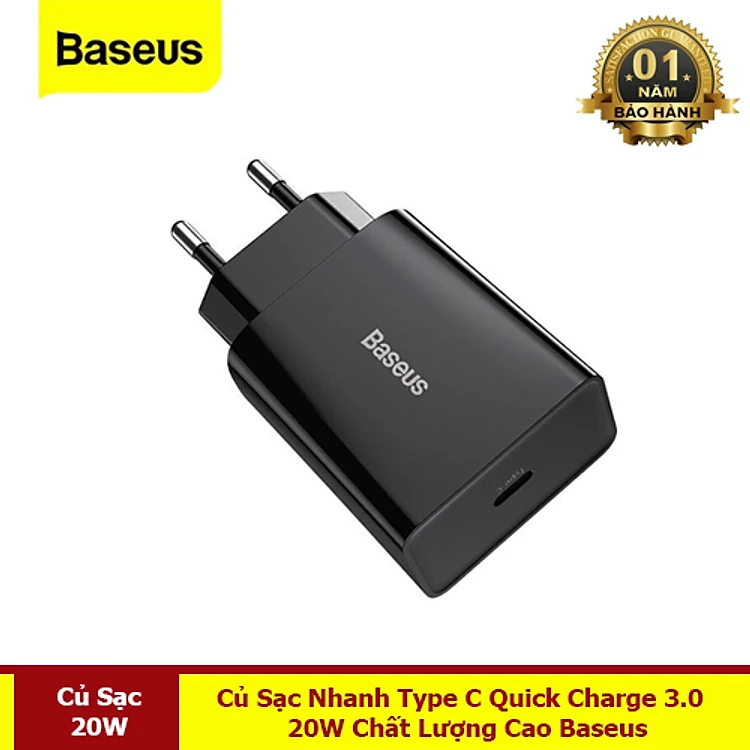 Củ Sạc Nhanh Type C 20W Quick Charge 3.0 - PD 3.0 Hỗ Trợ Sạc Nhanh Cho Điện Thoại - Hàng Chính Hãng Baseus