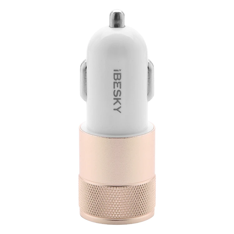 Củ Sạc Xe Hơi iBesky 2.4A Hai Cổng (CS12) (Trắng Phối Vàng) - Hàng Nhập Khẩu