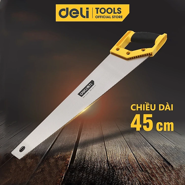 Cưa Cầm Tay Bản Rộng Deli Chính Hãng - Chiều Dài 450mm - Lưỡi Cưa Thép Sắc Bén - Vỏ Bọc An Toàn, Bảo Vệ Lưỡi Cưa - Hàng Chính Hãng - DL6845