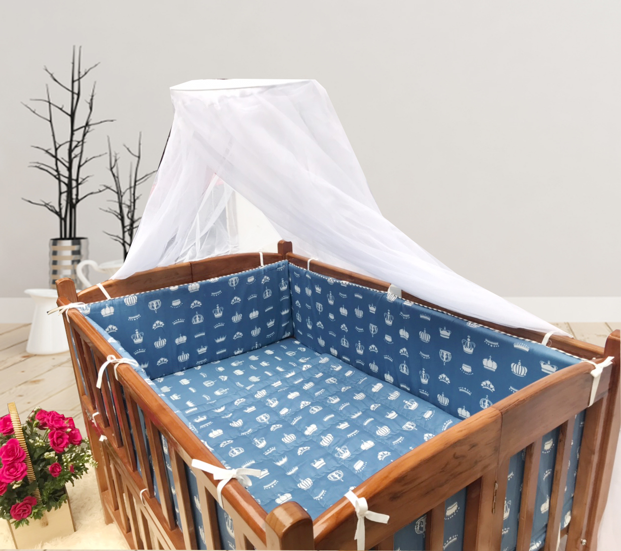Cũi cho bé – Combo cũi Cánh gián – Phụ kiện Vương Miện Ghi