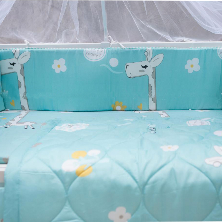 Quây cũi bốn mùa: Gồm 4 tấm bao quanh thành cũi, với độ dày lõi mút 2cm tạo độ êm cho bé, giúp bé chơi và nằm an toàn không va đập vào thành cũi.