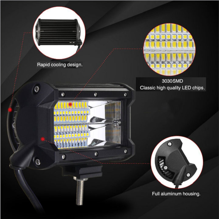 Cụm đèn Led trợ sáng ô tô, bóng led siêu sáng 2 hàng công suất 72w ánh sáng trắng cao cấp dùng cho oto và xe máy chống nước, chống sock – Tặng Kèm Móc Khóa 4Tech.
