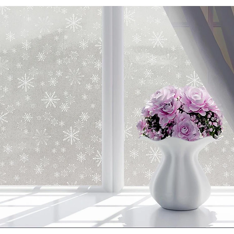 Cuộn 5m x 60cm Decal dán kính mờ PVC (có sẵn keo dán) - HOA TUYẾT TRẮNG PK13