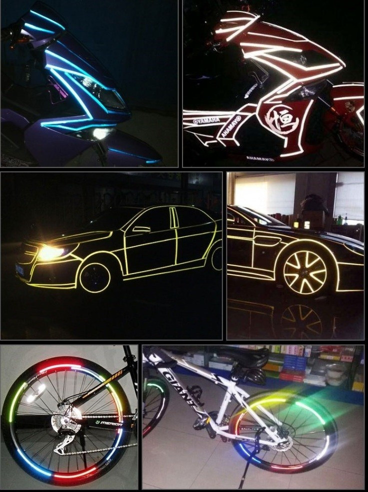 Trang trí xe bằng tem phản quang giúp xe trở lên đẹp, bắt mắt và thể hiện cá tính của người sử dụng. ngoài ra, dùng tem phản quang để trang trí xe còn giúp chiếc xe của bạn trở nên tỏa sáng hơn trong buổi đêm, đồng thời giúp các xe khác dễ dàng chú ý đến và tránh bạn ra giúp đảm bảo an toàn khi di chuyển trong bóng đêm.