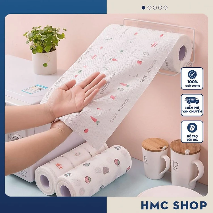Cuộn khăn giấy đa năng cuộn 50 tờ giấy lau bếp đa năng vải không dệt tái sử dụng