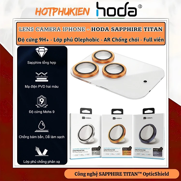 Cường lực lens camera Sapphire Mohs 9 TITAN chống lóa cho iPhone 17 Pro Max Hoda Frame Alloy Glass chống vân tay , Siêu Cứng, Chống Xước, Chống Lóa, Viền Titan Cao Cấp - Hàng nhập khẩu