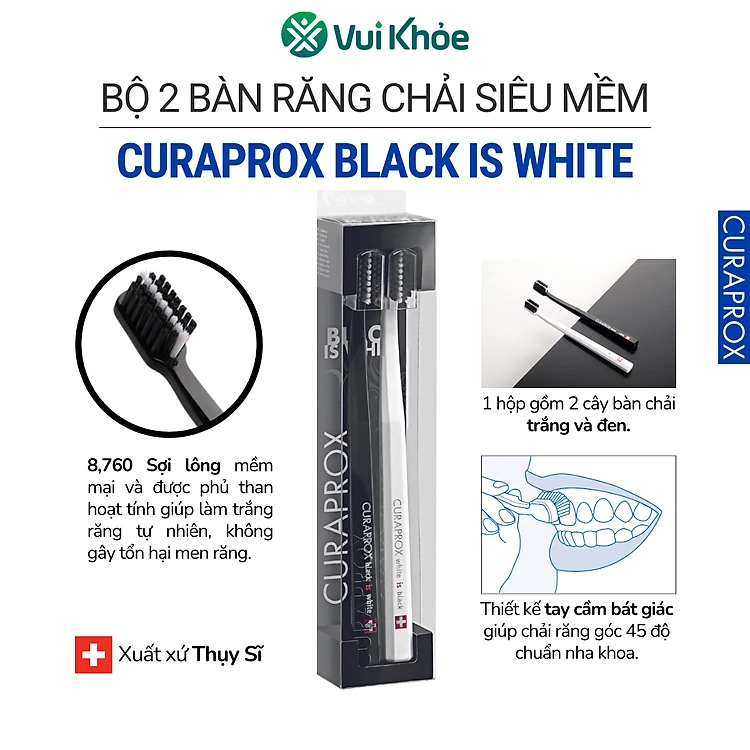 CURAPROX Black is White - Bộ 2 Cây Bàn Chải Trắng Răng | Hộp 2 cây | Mã SP 73327508
