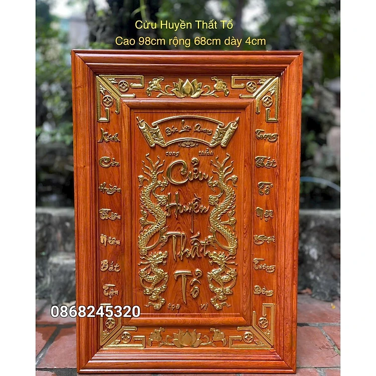Cửu huyền thất tổ bằng gỗ hương đá sơn pu dát vàng cao cấp kt 68×108×4cm