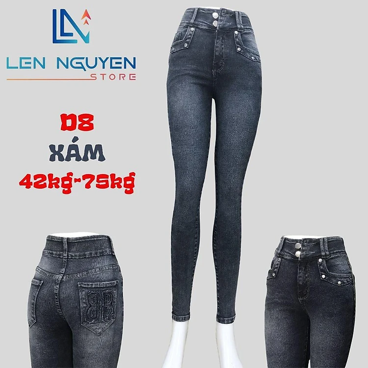 D8 [ Len Nguyen Store ] Quần Jean (Bò) Nữ Dài Dài 95-97cm, Màu Xám, Xanh, Size 42kg-75kg, Thiết Kế Túi Trước Và Thêu Túi Sau, Lưng Cao 2 Nút, Co Giãn, Mền Mịn, Bigsize, Hotgirl, Skinny, Ống Ôm, Mang Phong Cách Năng Động, Trẻ Trung, Tự Tin, Dễ Phối Đồ. Women Denim Pants