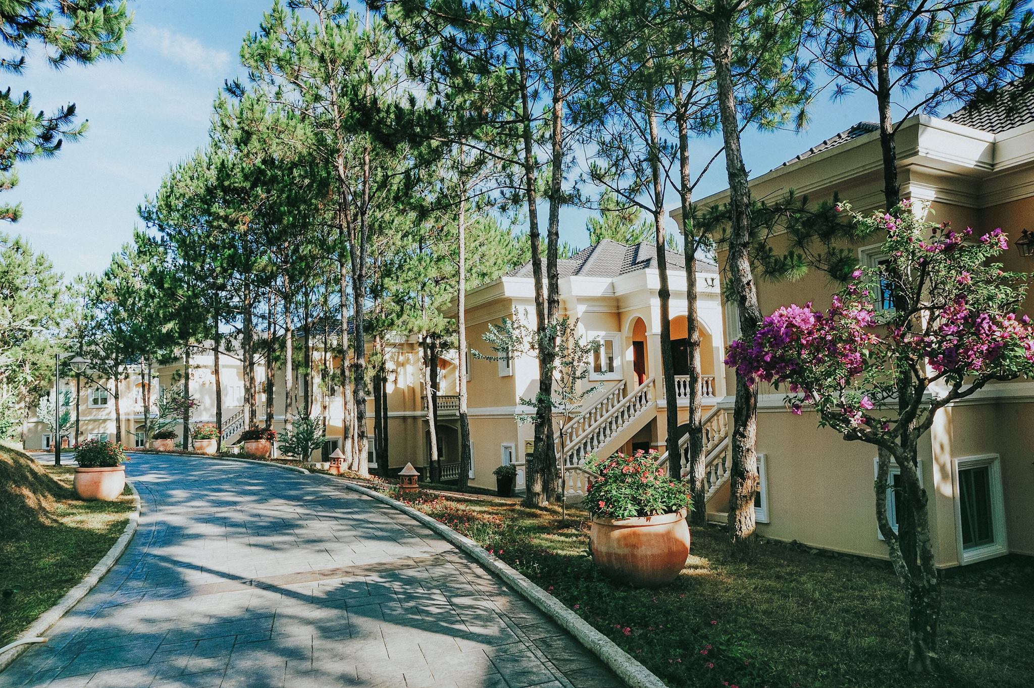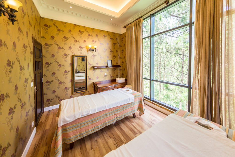 Khu nghỉ mát sang trọng này có sáu loại phòng, tất cả đều mang tên của các loài hoa đặc trưng trên phố núi: Mimosa Deluxe (phòng Hoa Mimosa), Jasmine Luxury (phòng Hoa Lài), và Camellia Suite (phòng Trà Hoa Nữ). Những căn phòng được trang bị nội thất cao cấp và tinh sảo như đèn chùm pha lê lấp lánh, khung tranh thiếu nữ cổ kính, bồn tắm Jacuzzi hiện đại, lò sưởi sang trọng .... Có ban công rộng thoáng nhìn ra toàn cảnh núi, vườn và hồ, tạo nên những xúc cảm thật riêng biệt.