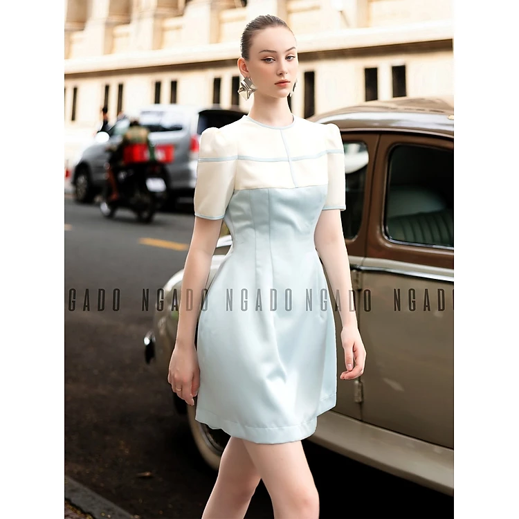 Đầm xanh mint phối trắng NGADO , đầm nữ , Đầm ngắn trẻ trung , Đầm thiết kế