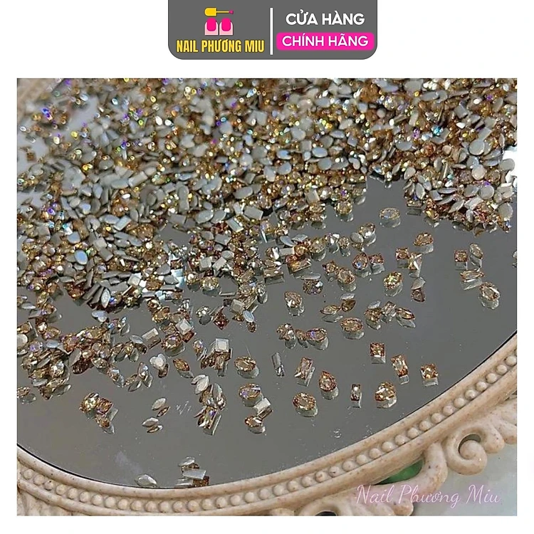 Đá Mini Chân Bằng Vàng Trà Siêu Nhỏ 100 Viên, Thủy Tinh Nhân Tạo Cao Cấp, Đá Đính Móng, Siêu Sáng, Mix Mẫu Đa Dạng Sơn Gel Nữ