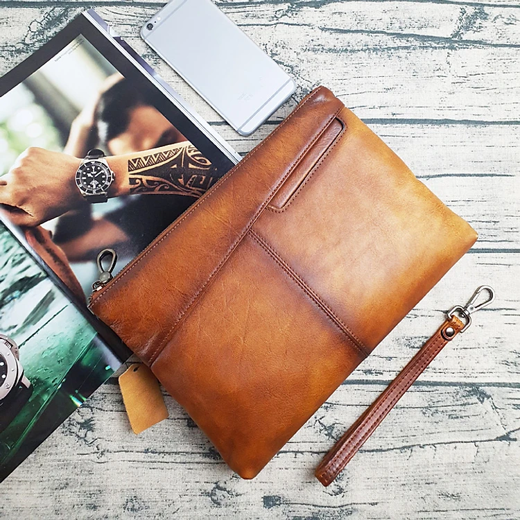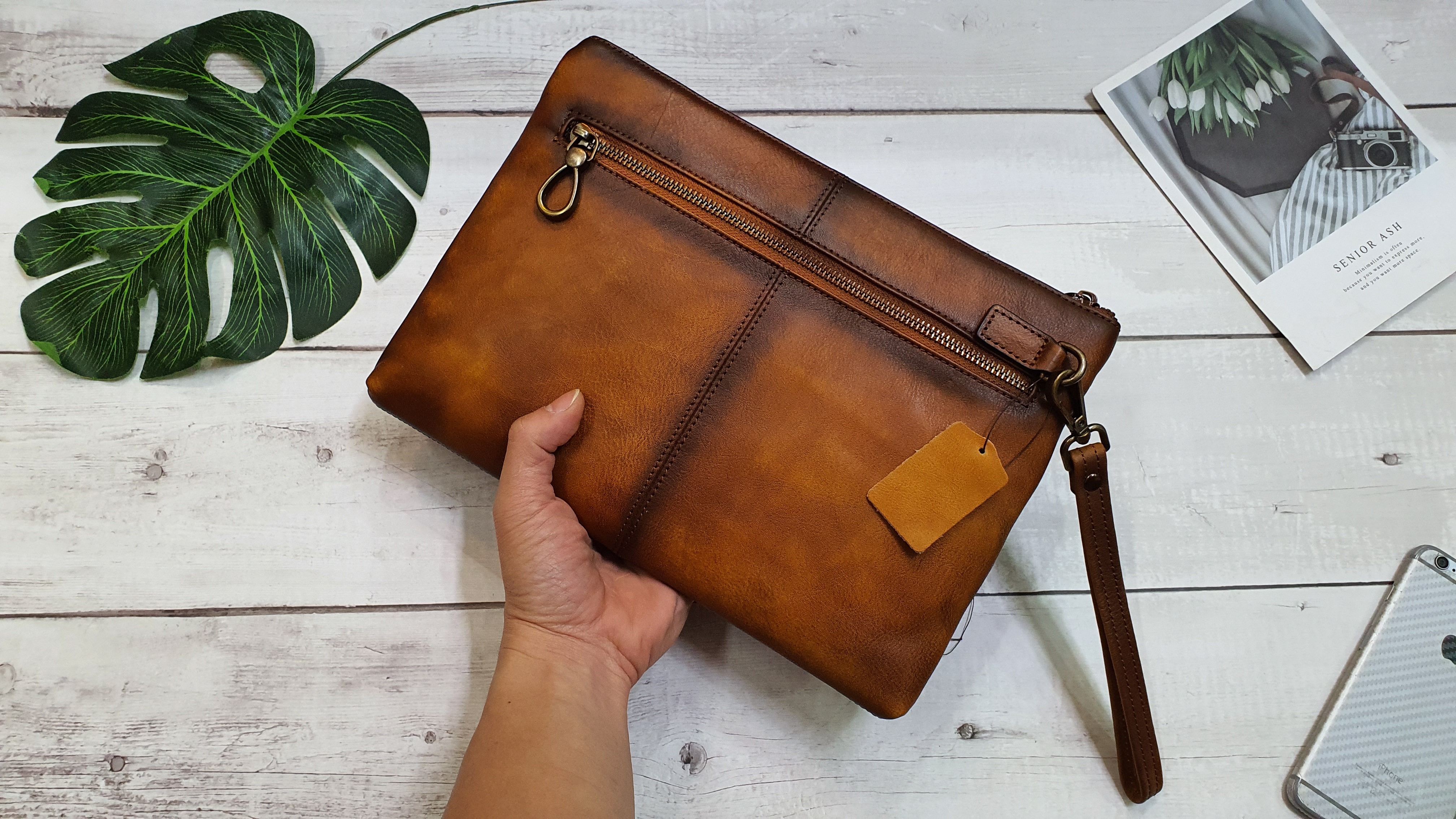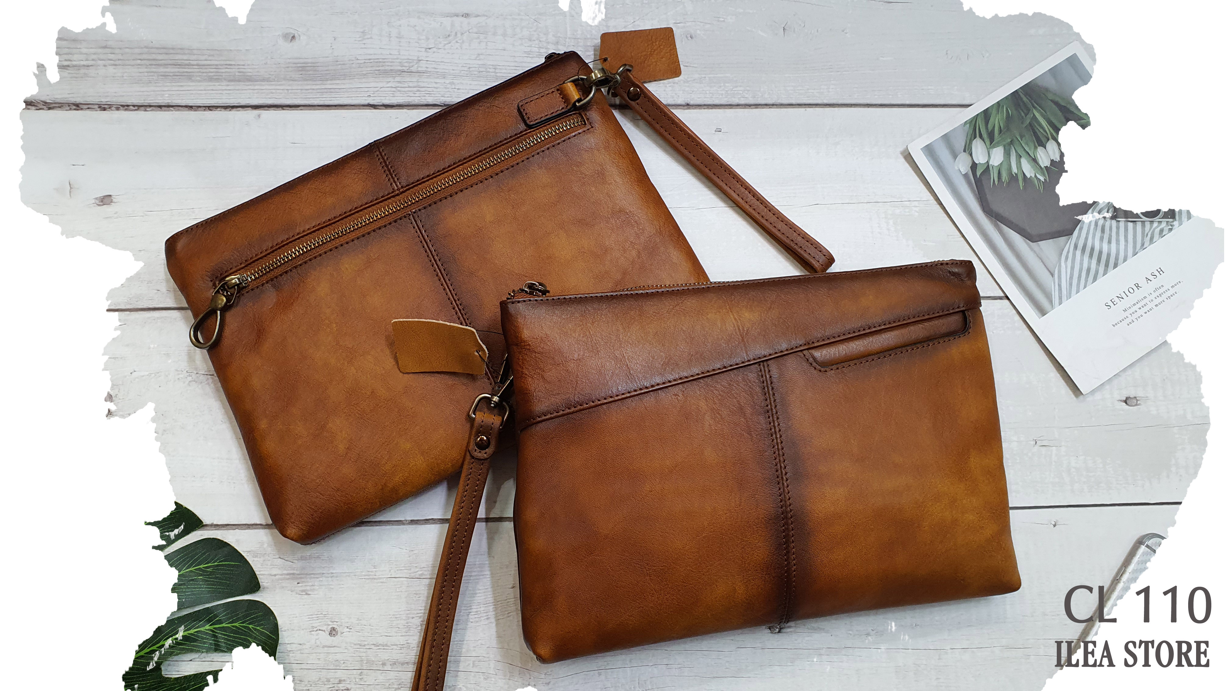 [Da thật] Clutch da thật chỉ chéo CL110 - 100% da bò thật, BH 3 năm