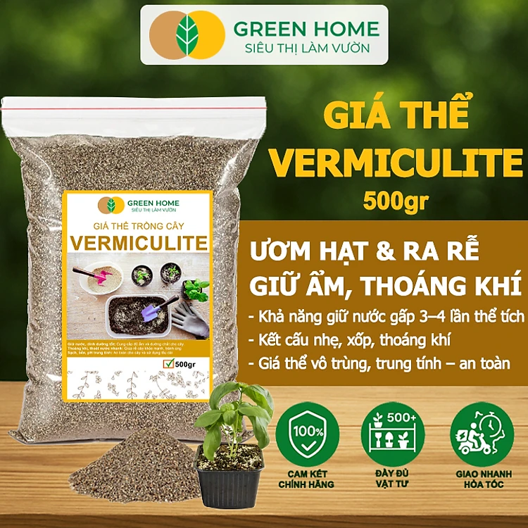 Đá Vermiculite (Vơ Mi) Greenhome, Bao 500gr, Giá Thể, Ươm Hạt Giống, Trồng Rau Mầm, Đất Hoa Hồng, Sen Đá, Thuỷ Canh
