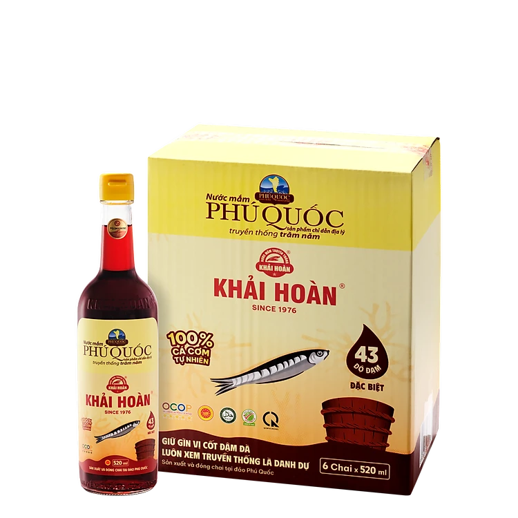 Đặc Sản Phú Quốc - Hộp 6 Chai Thủy Tinh Nước Mắm Phú Quốc Khải Hoàn 43 Độ Đạm (90Ml/ Chai) - Ocop 5 Sao