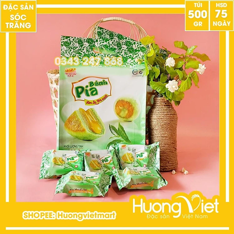 HUONGVIETMART cam kết Bánh pía kim sa trà xanh túi 500g (12 bánh) chính hãng 100% Tân Huê Viên, Đó cũng là lý do HUONGVIETMART nhận được hơn 3.200 đánh giá 5 sao ️️️️️