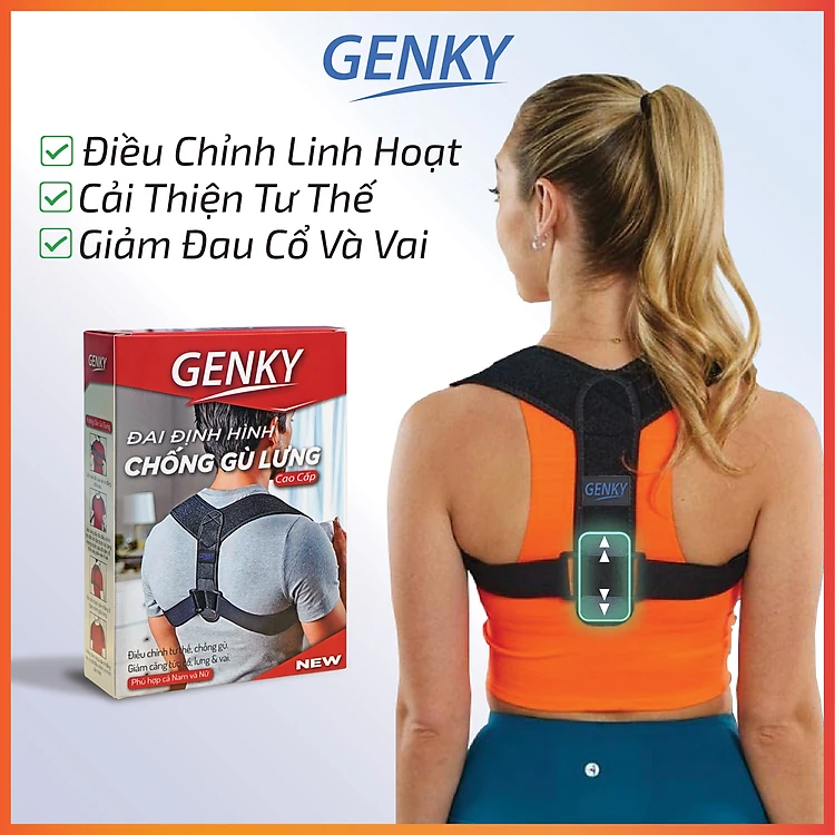 Đai Chống Gù Lưng GENKY Cho Nam Nữ Trẻ Em, Định Hình Cột Sống, Giảm Đau Lưng, Hỗ Trợ Cổ Và Vai, Chống Cong Vẹo Cột Sống - Hàng Chính Hãng