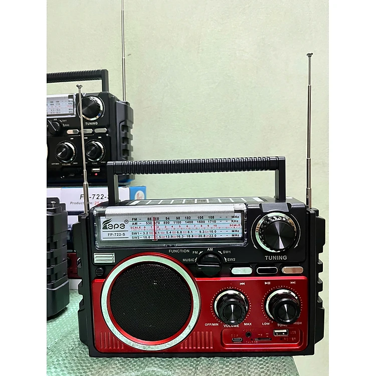 Đài FM Radio Nghe Nhạc FEPE FP-722-S Bluetooth-Sạc Năng Lượng Mặt Trời,Thiết Kế Cổ Điển Sang Trọng ,2 Ăn-Ten Bắt Sóng Mạnh Hỗ Trợ USB và Thẻ Nhớ- Hàng Chính Hãng