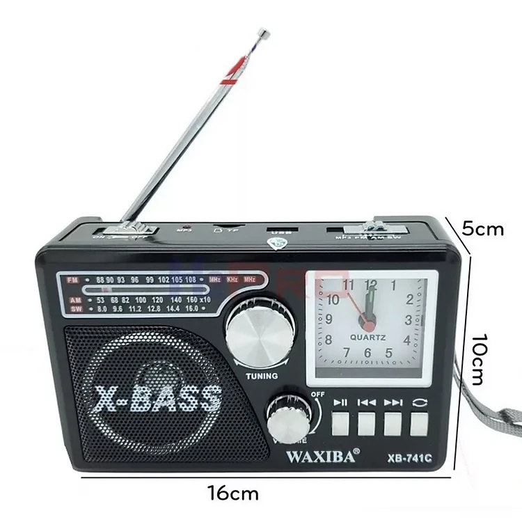 Đài Radio Nghe Nhạc, Đài Radio Waxiba XB-741C FM-AM-SW Cao Cấp-Usb-Thẻ Nhớ-Aux-Đèn Pin-Hàng Chính Hãng
