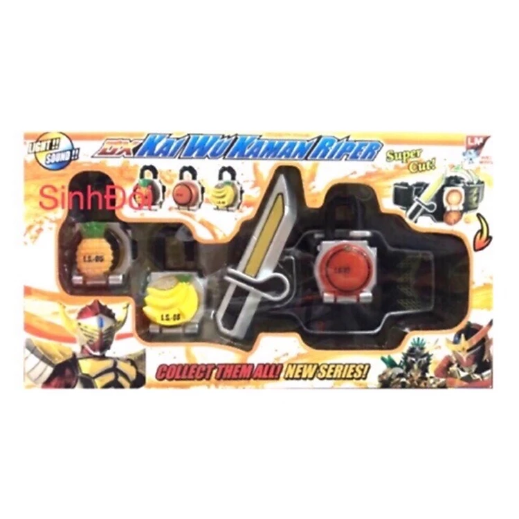 Đai siêu nhân : có đèn và tiếng kêu , có 3 mẫu khoá hình trái cây, có dây thun làm đai đeo bụng