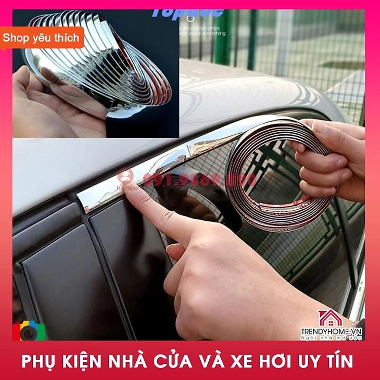 Giới thiệu sản phẩm: Cuộn nẹp mạ Chrome dán trang trí viền chân kính ô tô xe hơi dài 15M