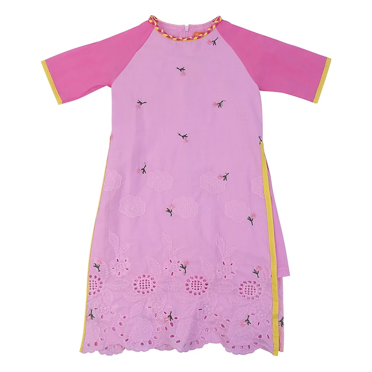 • Đầm Áo Dài Bé Gái VTA Kids BG70902 - Hồng được may từ chất liệu vải cottton thoáng mát, sợi vải mềm mại, an toàn với làn da nhạy cảm của bé. Đầm thiết kế form suông đem lại cảm giác thoải mái, thoáng mát khi mặc.