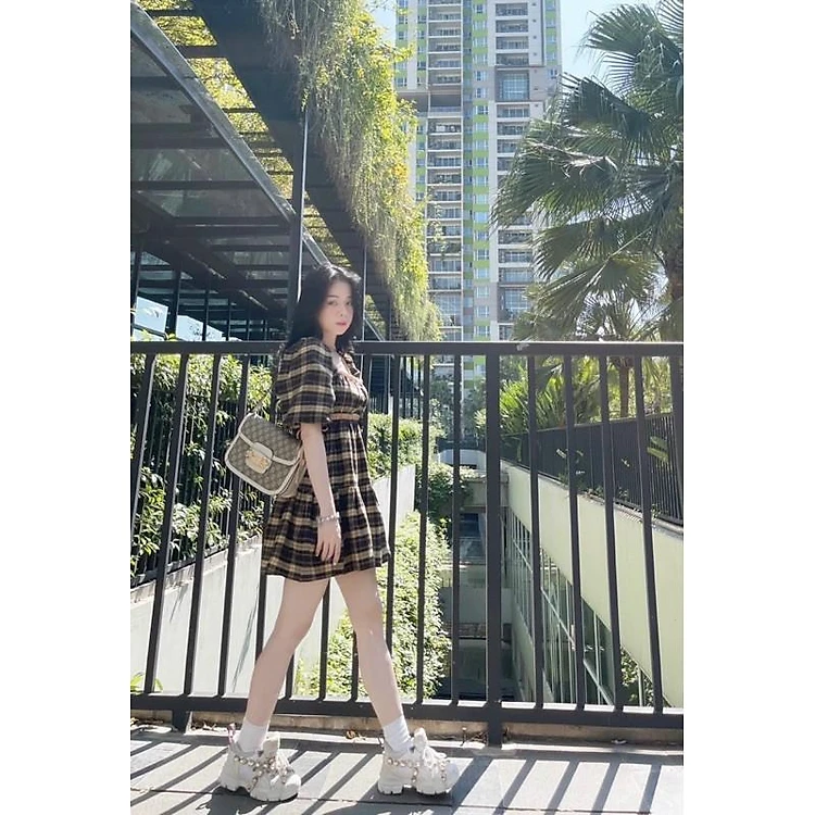 ️️️️đầm caro tay bí ️️️️