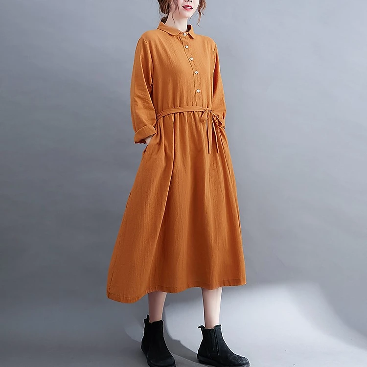 Đầm babydoll dáng dài qua gối, Đầm bigsize dài tay form rộng che khuyết điểm chất liệu đũi mềm Haint Boutique