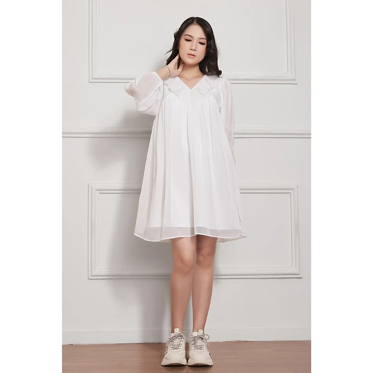 Đầm Babydoll Lụa Crep Cổ Bèo Tay Dài Maxivic, La Mộc - LM012210