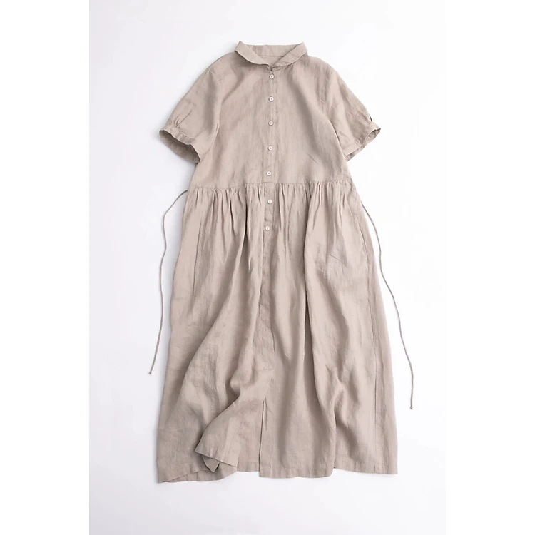 Đầm babydoll nữ thiết kế cổ sen mềm mại, nữ tính vải Linen mịn mát