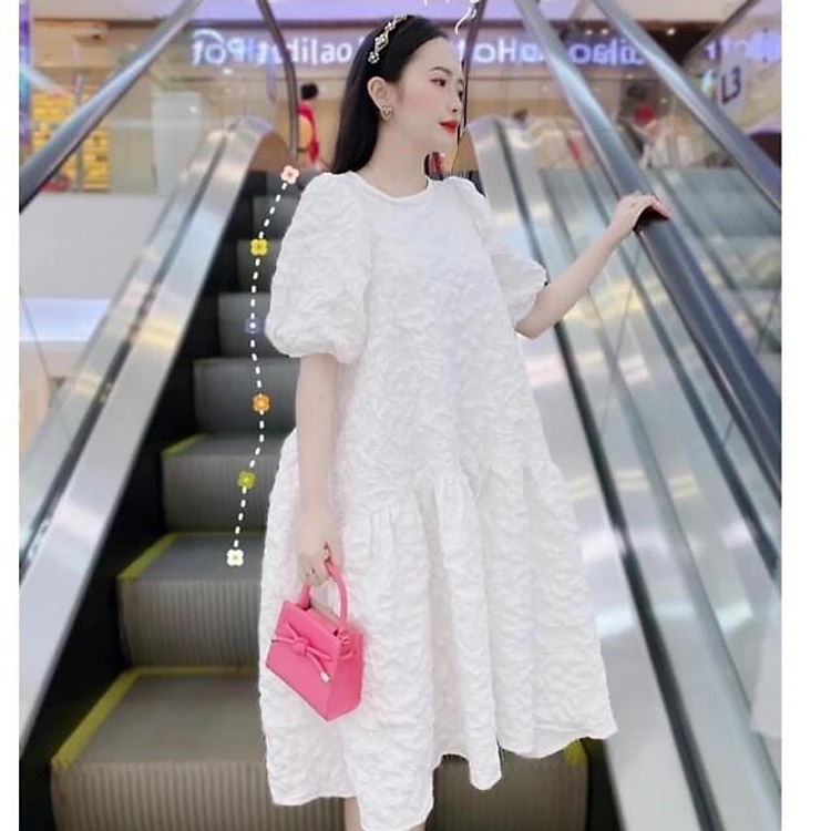 Đầm bầu cao cấp dự tiệc, váy bầu babydoll gấm tầng