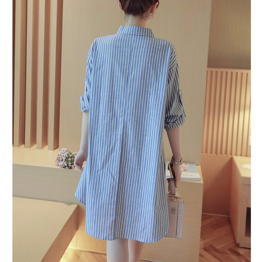 - Đầm bầu công sở cổ sơ mi kẻ sọc DB010 với chất vải mềm và mát mang lại cảm giác thoải mái cho người mặc.