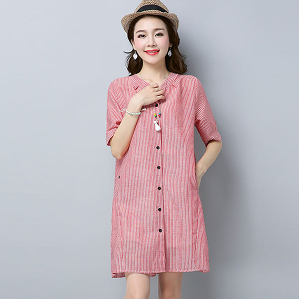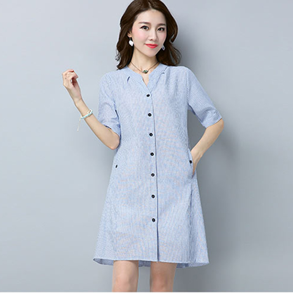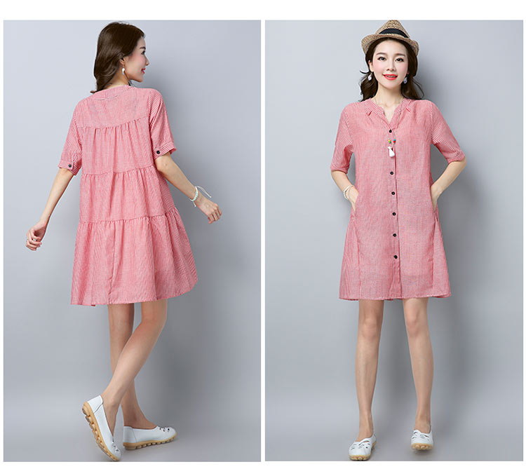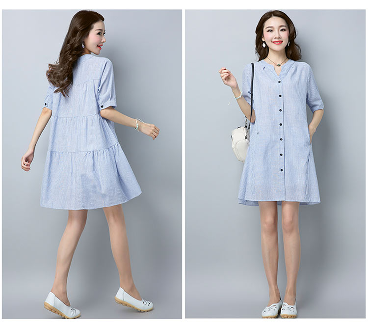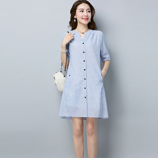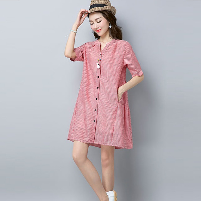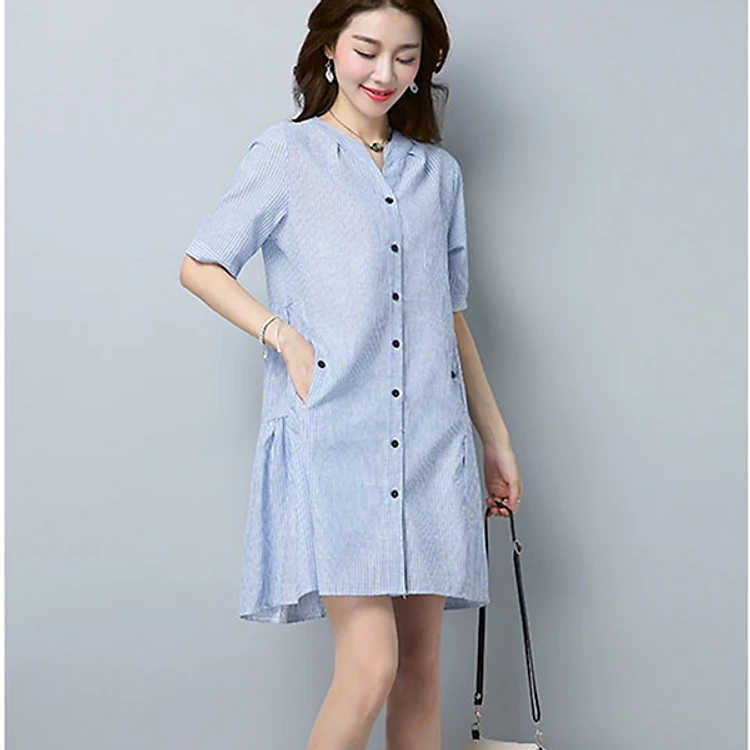 - Đầm bầu công sở cổ trụ kẻ sọc 2 túi bên với chất vải mềm và mát mang lại cảm giác thoải mái cho người mặc.