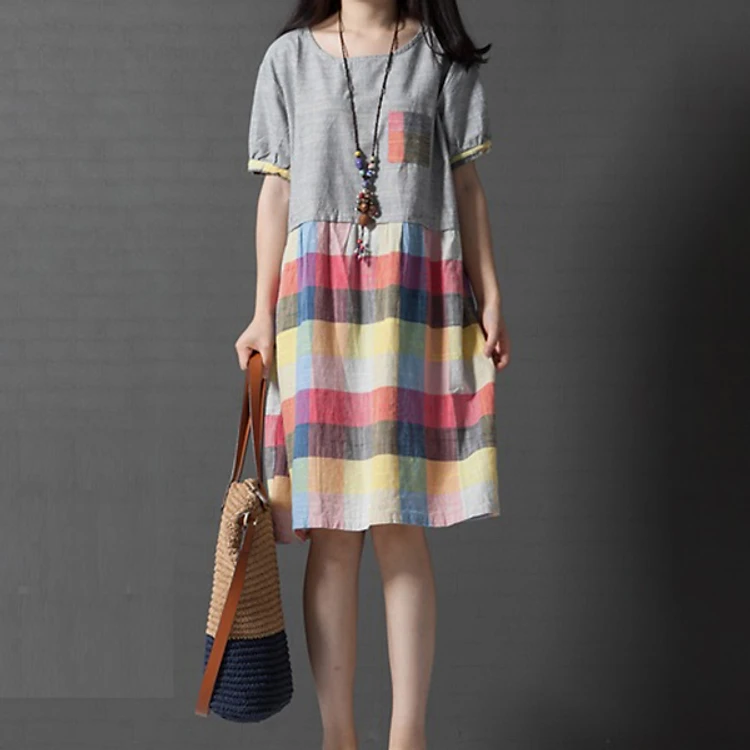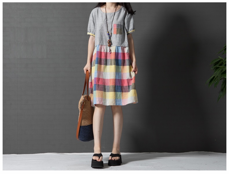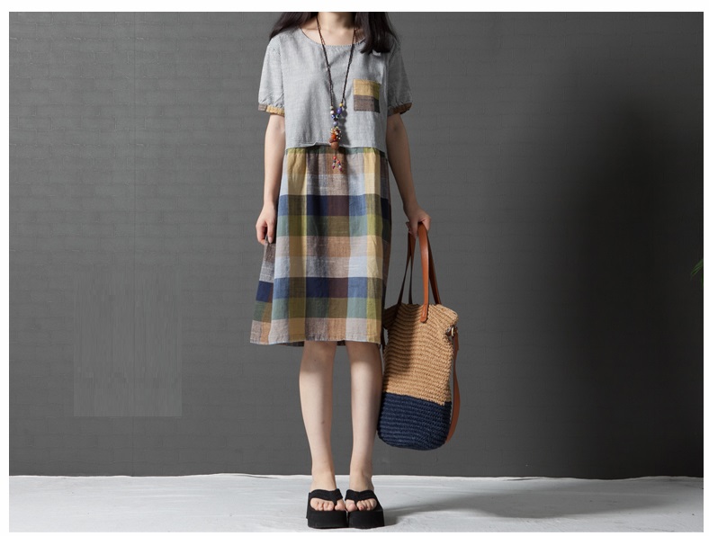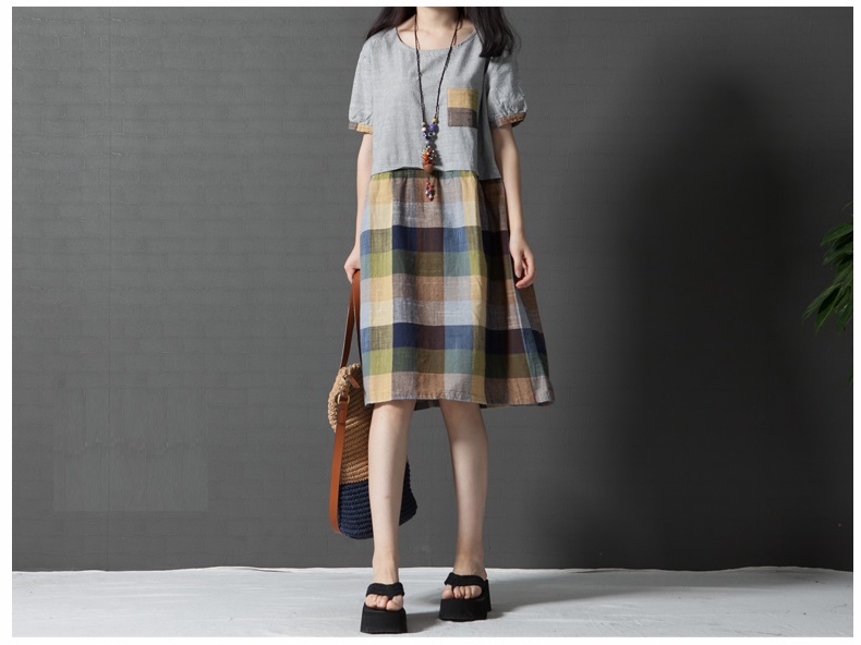 Đầm bầu công sở phối kẻ caro DB02