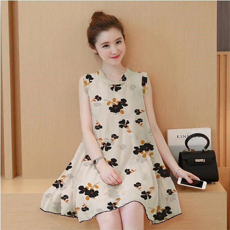 Kiểu dáng: đầm suông rộng chữ A, họa tiết