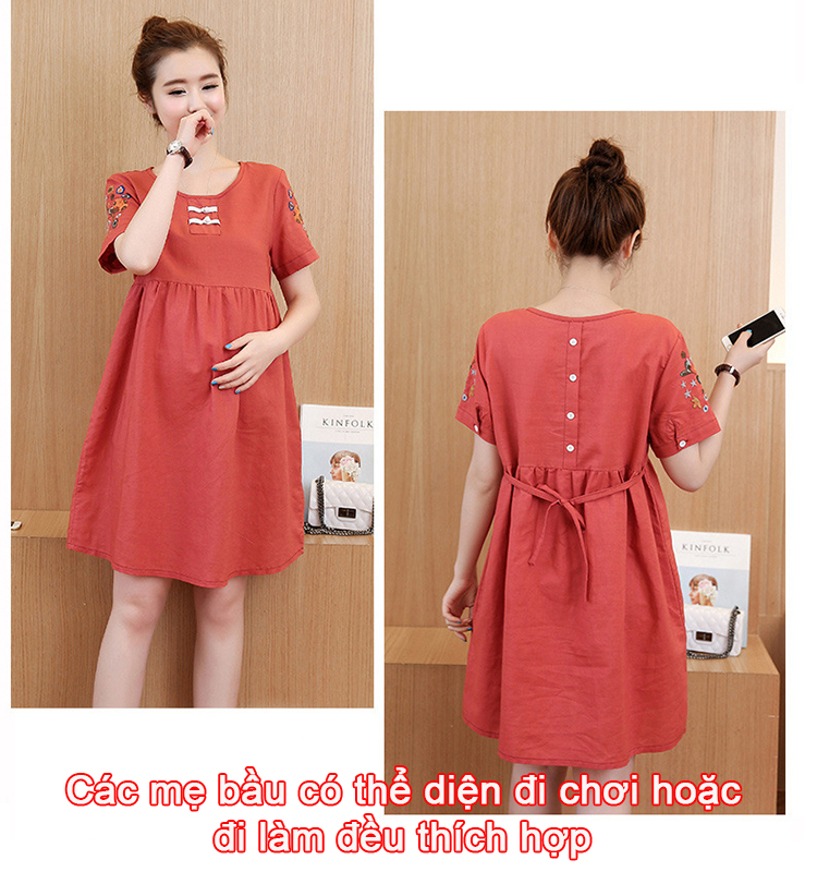 - Đầm Bầu Công sở - Váy Bầu Thêu Hoa với kiểu dáng váy suông rộng mang đến cho mẫu váy nét đẹp duyên dáng và thời thượng.
