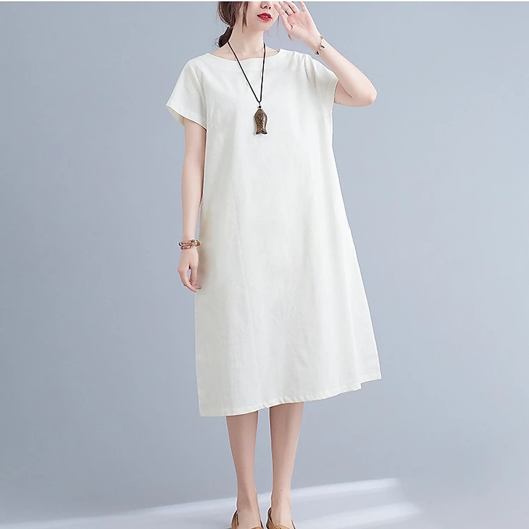 Đầm bầu suông linen cổ tròn ngắn tay mặc hè, chất linen tự nhiên mềm mát Haint Boutique B84